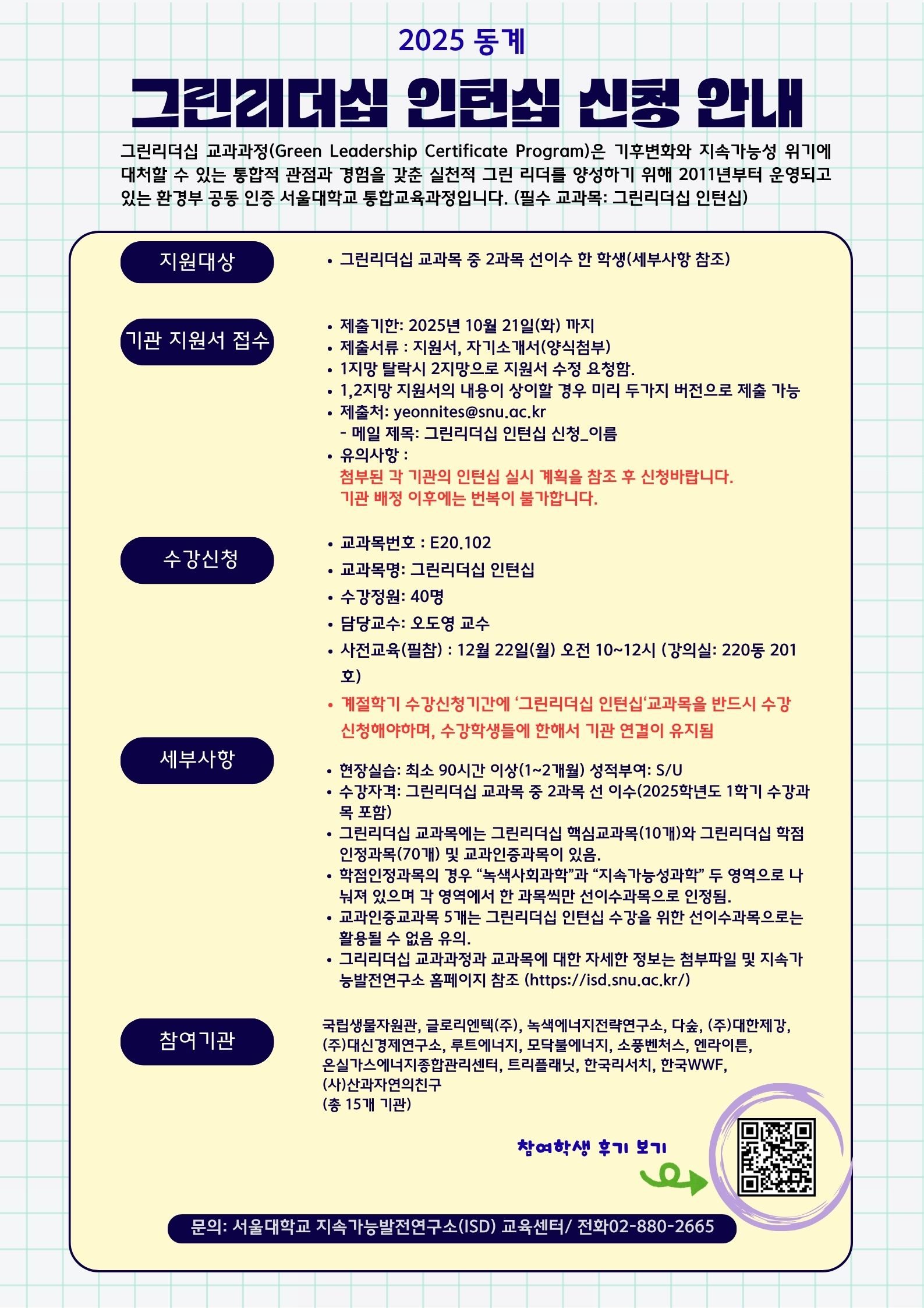 2025학년도 동계 그린리더십 인턴십 신청 안내